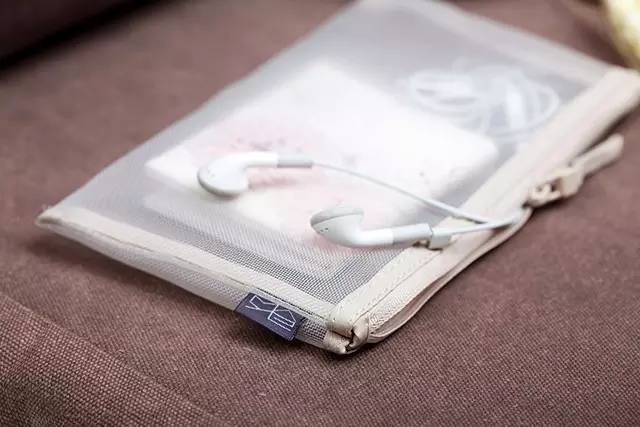 網格袋,可以裝一些小物件:證件、耳機、零錢等等,而且是透視的,裝了什么,一目了然。